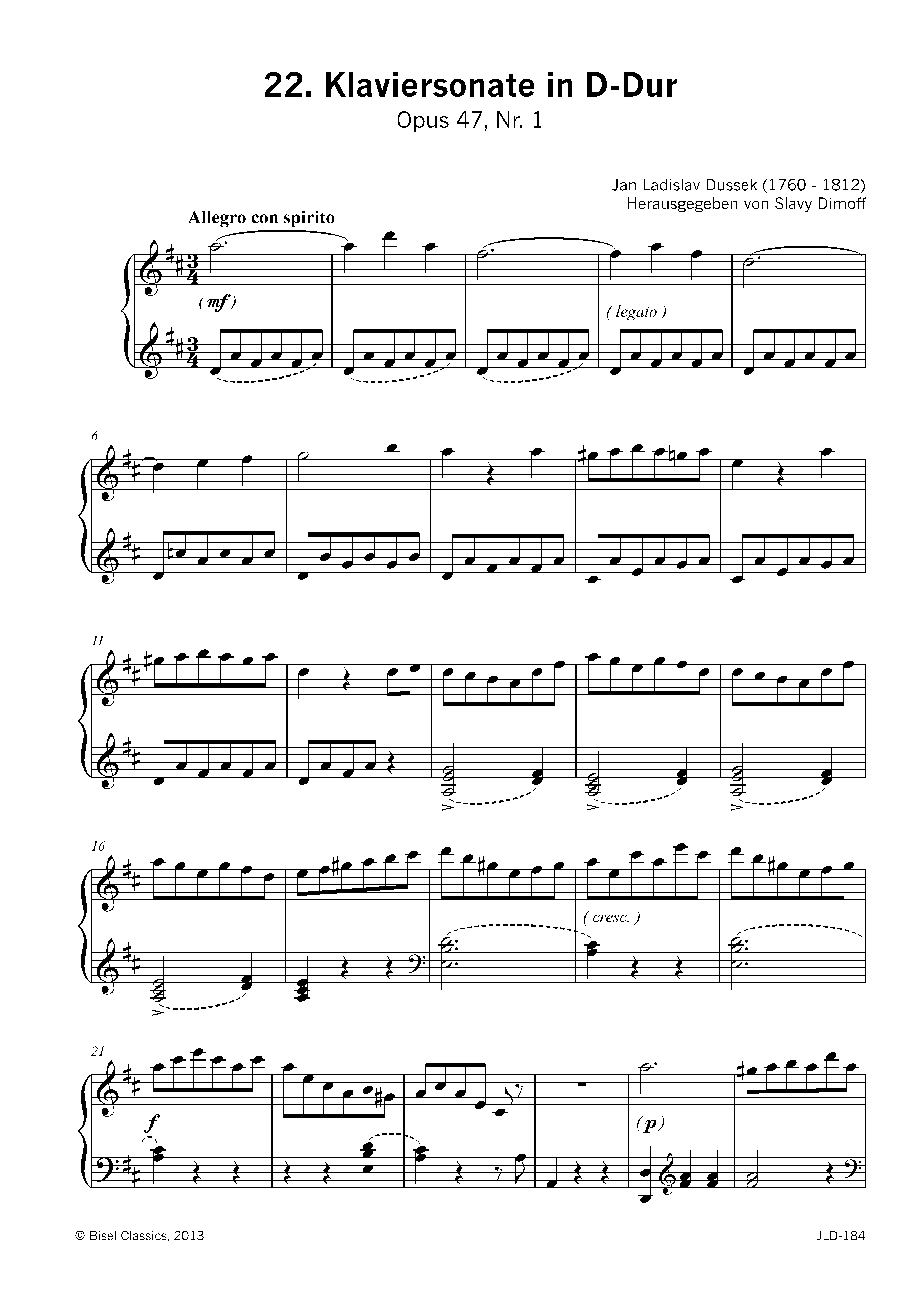 Dussek: 22. Klaviersonate in D-Dur, Opus 47, Nr. 1