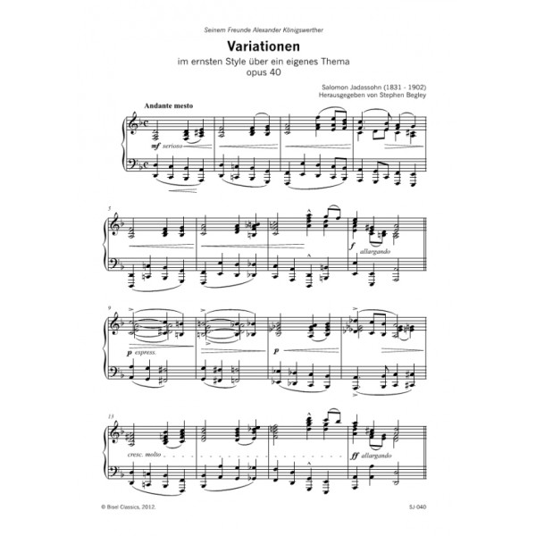 Jadassohn: Variationen im ernsten Stile, Opus 40