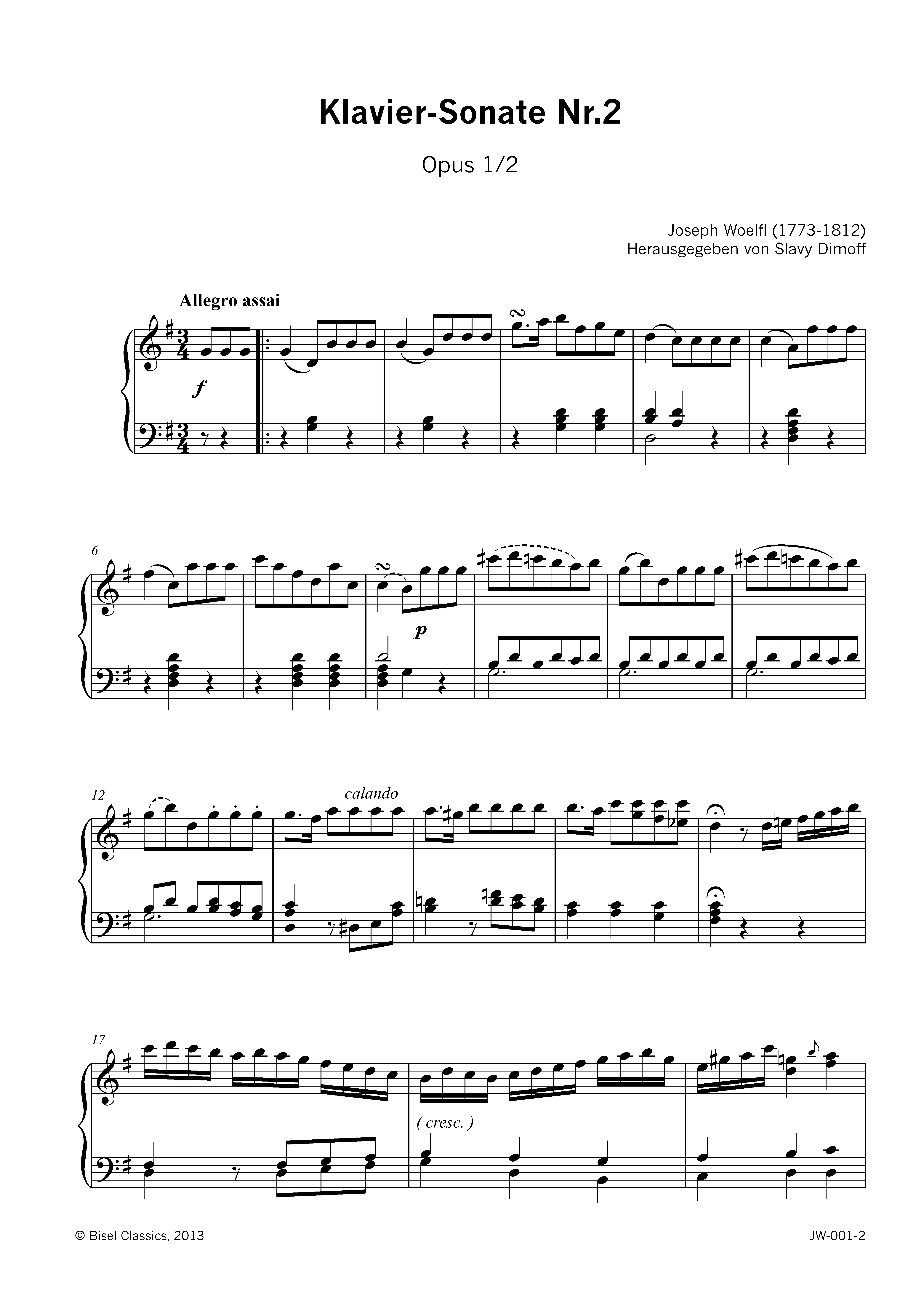 Woelfl: Klaviersonate Nr. 2 Opus 1 - 2